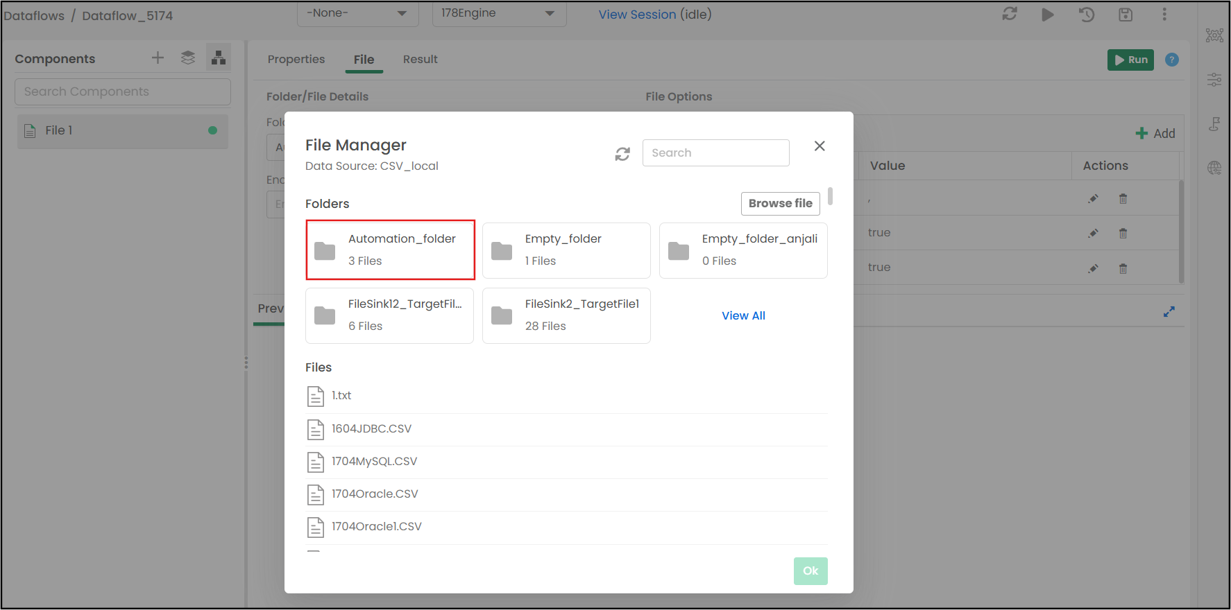 For a better file browsing experience, a File Manager has been implemented to support sub-folders and fetch data files or folders from S3 and Azure Data Lake System (ADLS), Shared, and Local file locations.